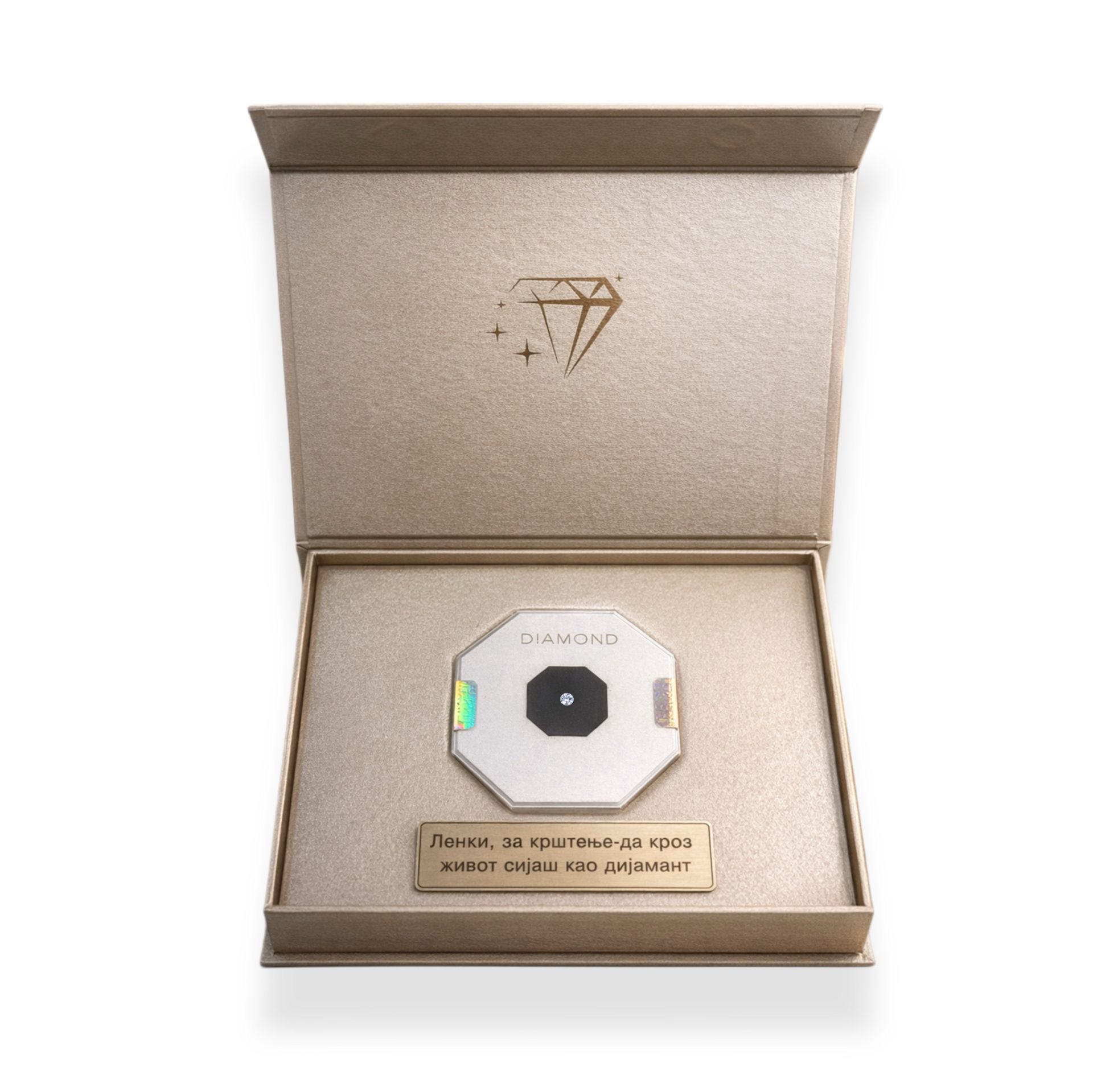 Na ovaj način, pored samog dijamanta, možete odabrati i estetski okvir i personalizaciju koja će ovaj poklon učiniti zaista posebnim.